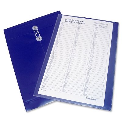 Winnable® Legal-size expanding poly interoffice envelope features a clear front pocket to hold routing sheets. Expands up to 1-1/4" for extra capacity. Made of durable, waterproof, tearproof, long-lasting, fully opaque poly. Top-loading envelope includes button and string closure. Comes with two printed routing sheets. 10" x 15".