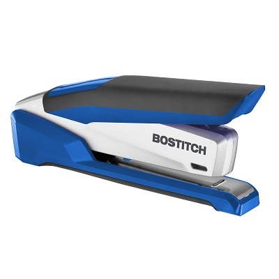 Bostitch® InPower™ 28 Premium Desktop Stapler. One-finger™ easy spring-powered stapling technology. Staples up to 28 sheets. Built-in staple remover. Integrated staple storage compartment. Jam-free design for smooth, continuous operation. Opens for bulletin board tacking and crafting. Sleek die-cast metal for lasting performance. Soft, rubber grip for comfortable use. Uses standard staples.
