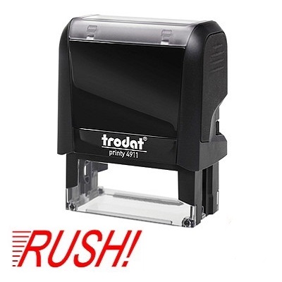 Trodat® Printy 4911 Climate-Neutral Self-Inking Message Stamps. Small and lightweight with easy impression positioning. 38 x 14mm text plate size. Contains up to 65% post-consumer recycled material. Non-toxic water-based ink. Limited lifetime warranty on mechanism.