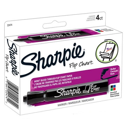 Sharpie® Flip Chart Markers feature a bullet-tip design for clear marking and that eliminates marker squeak. They have a low odour formula, which makes them great for the classroom or the office. Colours: black, blue, green, and red. AP certified non-toxic.