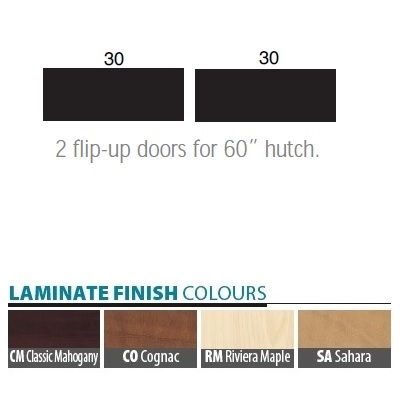 Links laminate hutch door kit for freestanding 36" high and postmounted 38" high hutches. Two flip up doors for 60" hutch. Dimensions: 60"W x .75"D x 14"H. Weight: 21 lbs.