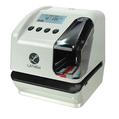 Lathem® LT5000. 2-line printing. Operates as document stamp, time clock or numbering machine. Custom text printing along with date and time. LCD display (time and date). 29 standard time and date formats. 15 preset text comments. 4 individual counters, 8 digits per counter, up to 9 repeats. 7 languages.